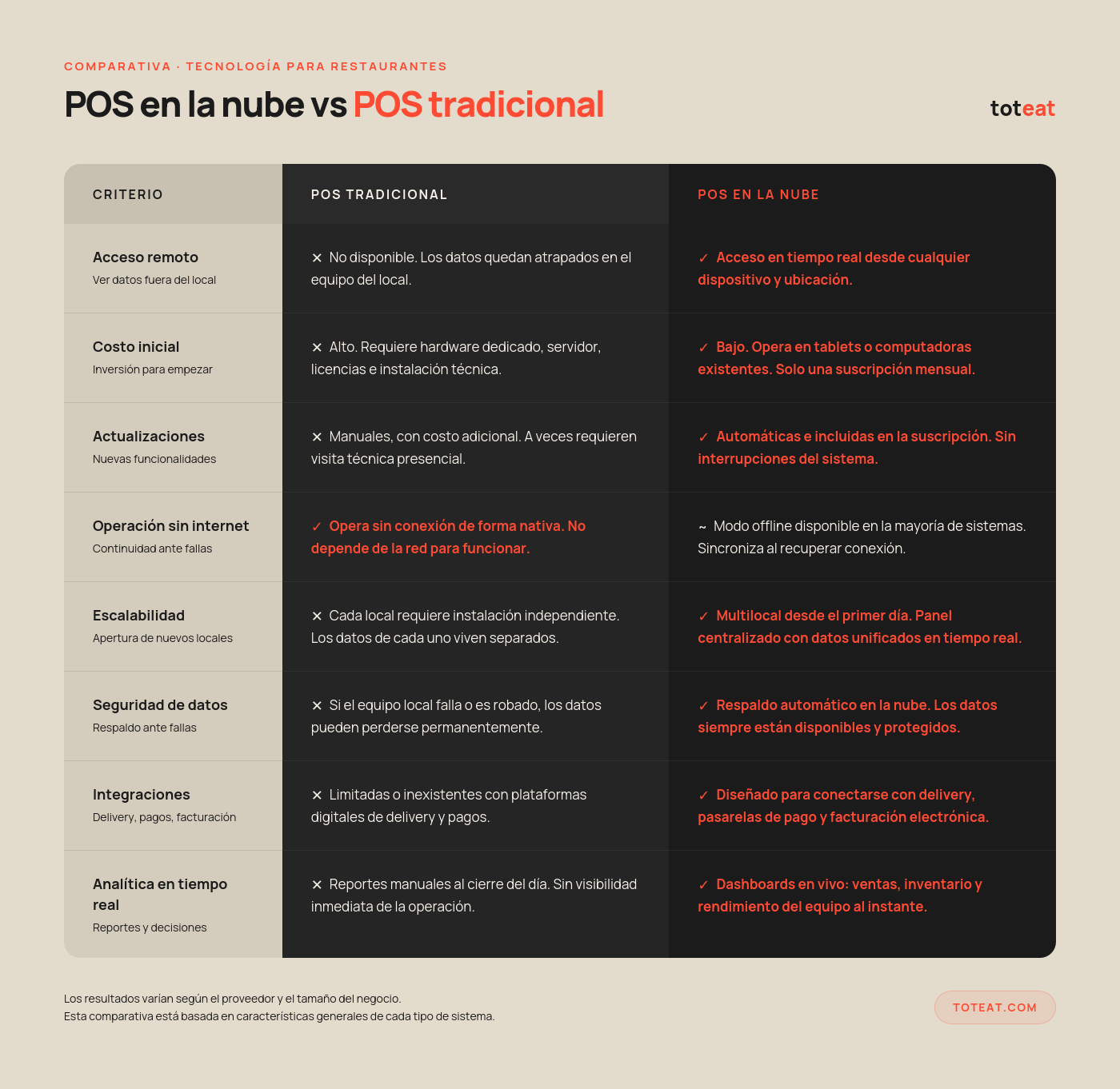 Elegir entre un POS en la nube y uno tradicional no es solo una decisión tecnológica: es una decisión de negocio. Esta guía te explica las diferencias reales, con ejemplos concretos, para que elijas el sistema que realmente necesita tu restaurante.